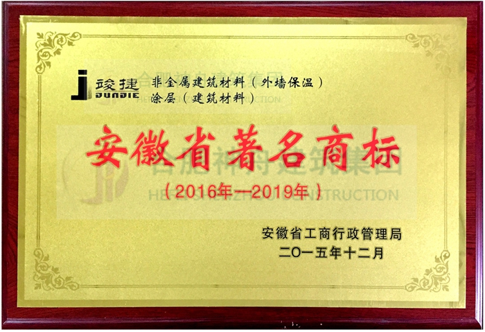 “竣捷”牌勻質改性防火保溫板、耐堿玻璃纖維網格布、真石漆通過安徽省經濟和信息化委員會的評審,榮獲了安徽省新產品榮譽證書